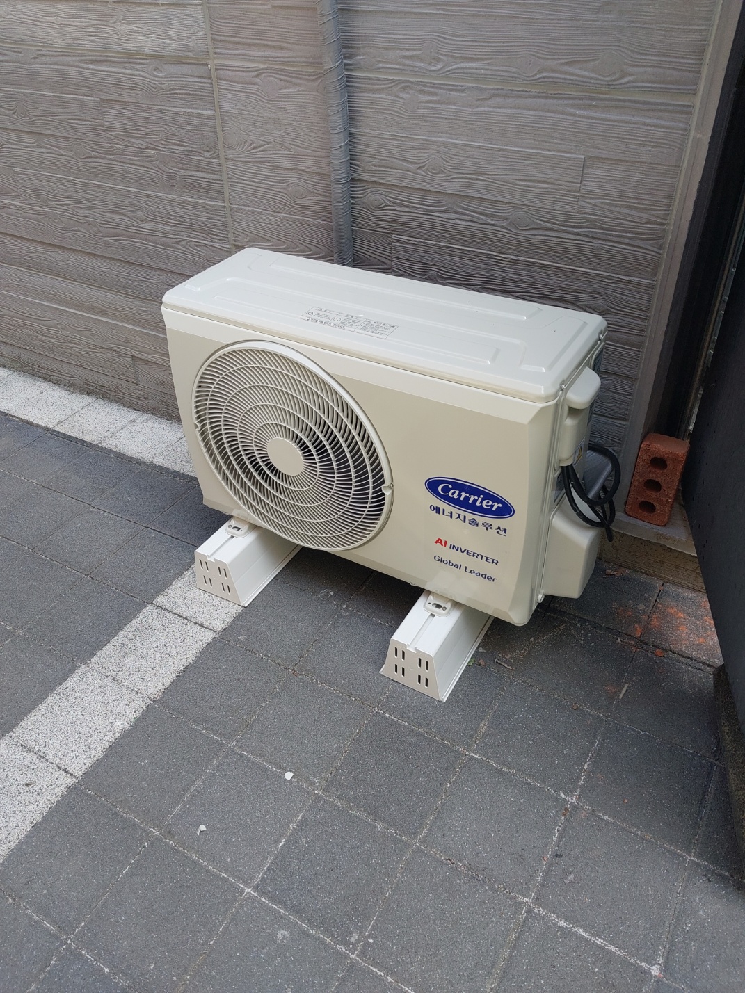 기존에는 냉난방기가 조리대 바로 위 벽면에 설치되어 있어, 뜨거운 열기와 기름 연기가 바로 흡입구로 들어오면서 냉방 성능이 떨어지고 필터 오염이 빠르게 진행되는 문제가 반복되었습니다. 또한 배수 경사가 제대로 확보되지 않아, 응축수가 바닥을 적셔 청소와 안전에도 어려움이 있었습니다.