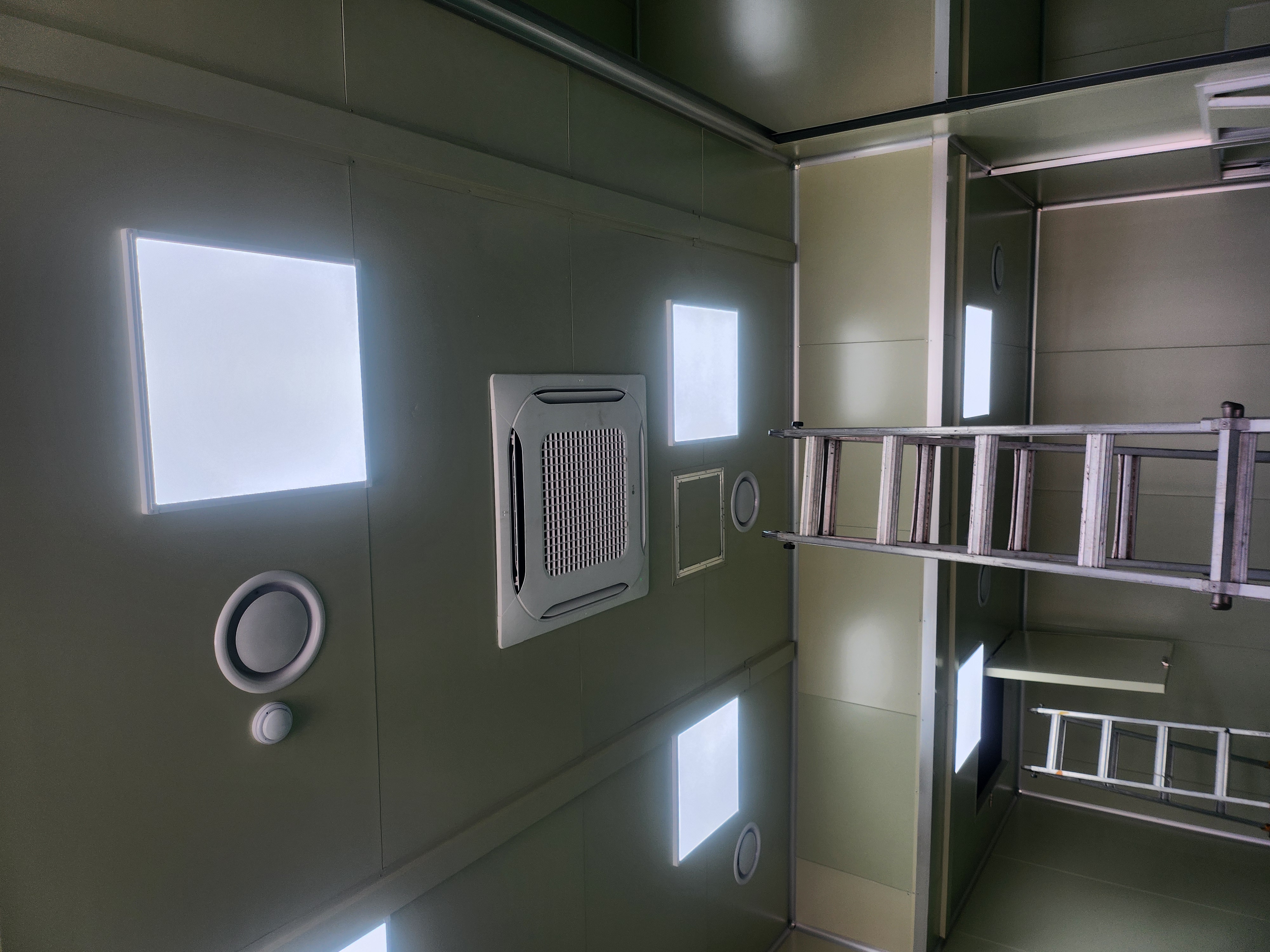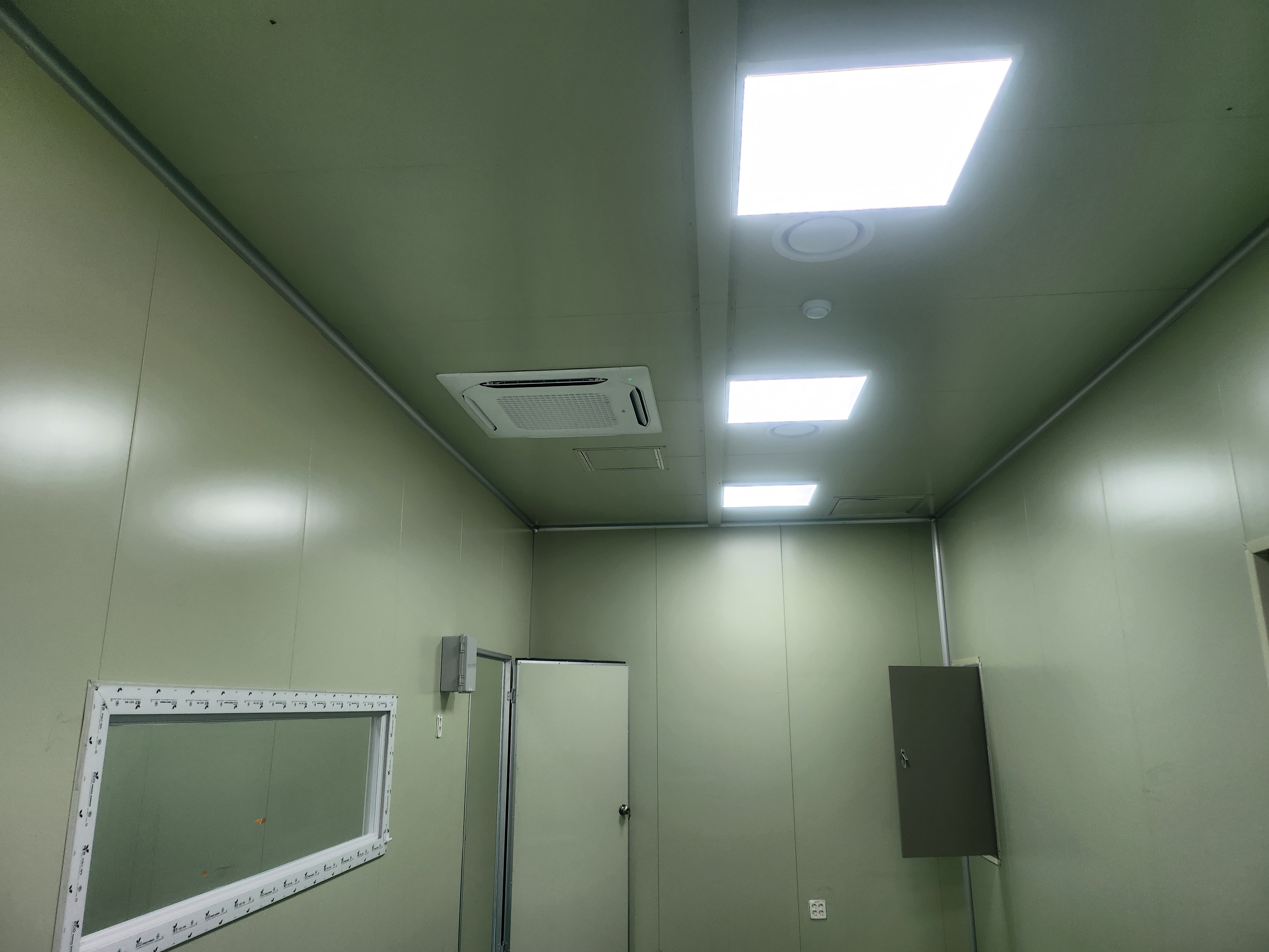 현장은 생산 구획마다 냉난방 필요 용량이 달랐기에, 15평, 25평, 40평 천장형 냉난방기를 각 구획에 설치했습니다. 이를 통해 한 구획의 냉난방이 다른 구획에 영향을 주지 않으면서, 외부 환경과도 철저히 분리된 상태를 유지할 수 있었습니다.