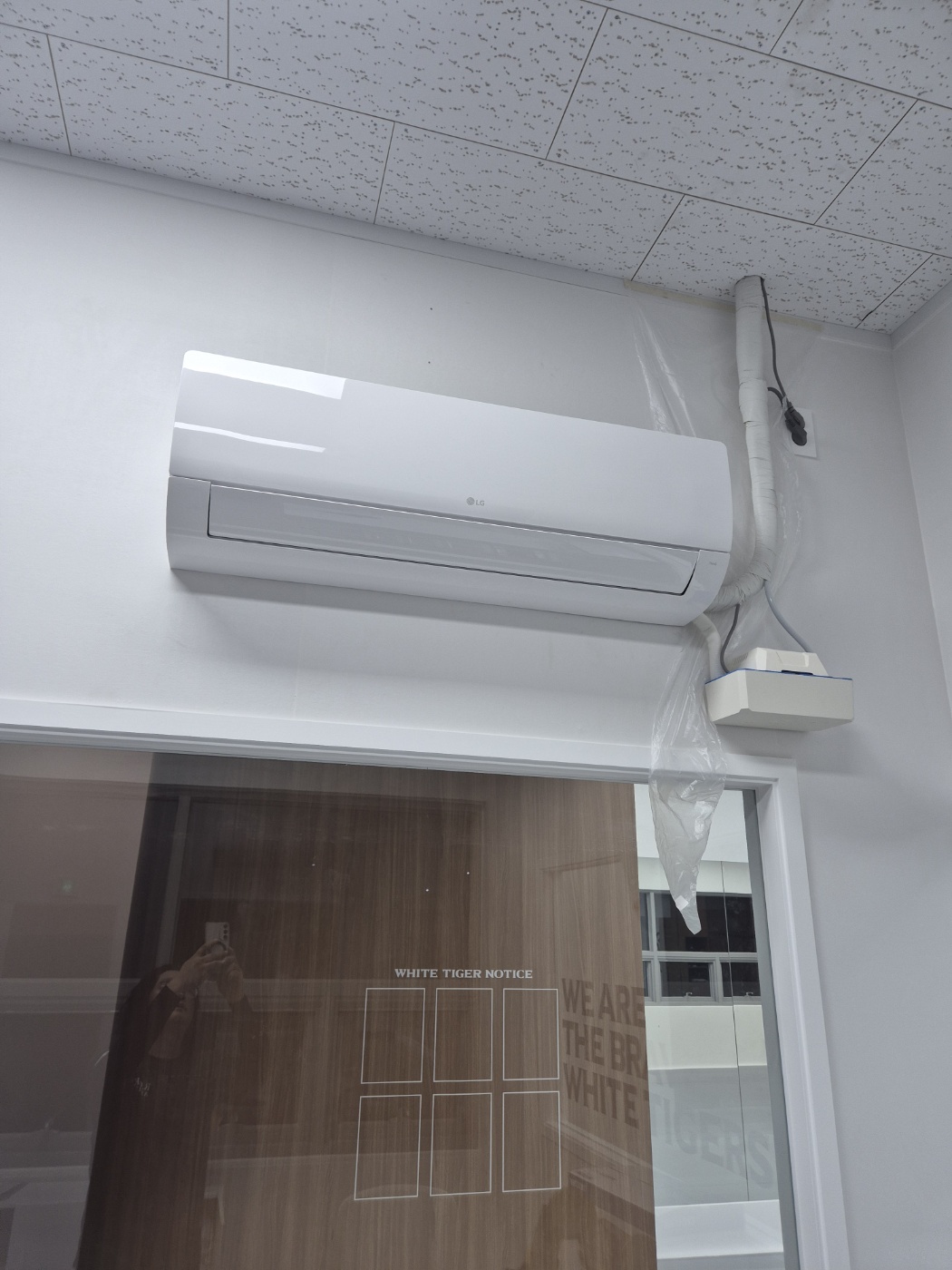 시설은 넓지 않지만 벽 2면이 통유리, 한쪽은 창문이 많은 구조라 냉난방 손실이 큰 환경이었습니다. 여름과 겨울 모두 쾌적한 온도 유지가 어려운 상태였고, 고객께서는 배관·전선 노출 없이 깔끔한 설치를 요청하셨습니다.